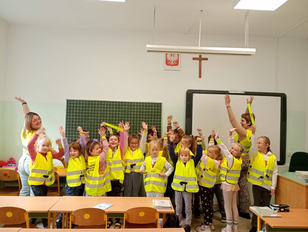 Do tej pory pierwszoklasiści odbyli spotkanie z panią policjantką na temat bezpiecznej drogi do szkoły i do domu. Uczniowie zostali wyposażeni w kamizelki odblaskowe oraz odblaski. Dodatkowo odblaskami zostały też obdarowane przedszkolaki i seniorzy z Klubu Senior+ w Koczale. W gablocie szkolnej zawisła również gazetka z ważnymi informacjami dotyczącymi bezpieczeństwa na drodze, a jeden z naszych uczniów napisał piosenkę w ramach konkursu. Ponadto w szkole odbyły się dwa konkursy: konkurs wiedzy oraz konkurs plastyczny, w których wzięli udział nasi uczniowie propagując tym samym bezpieczne zachowania na drodze.